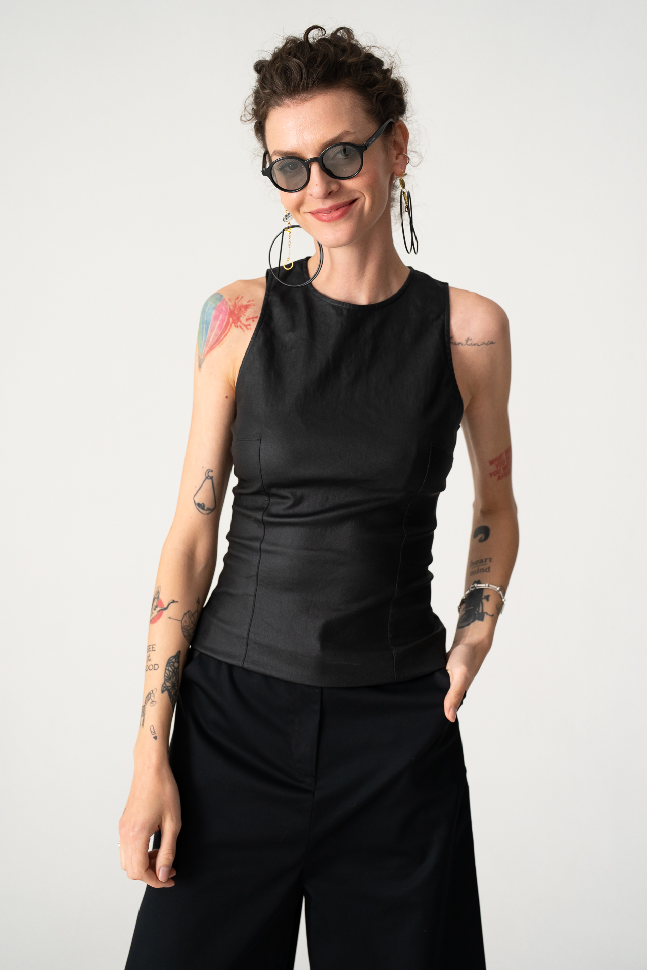 Leather like sleeveless top