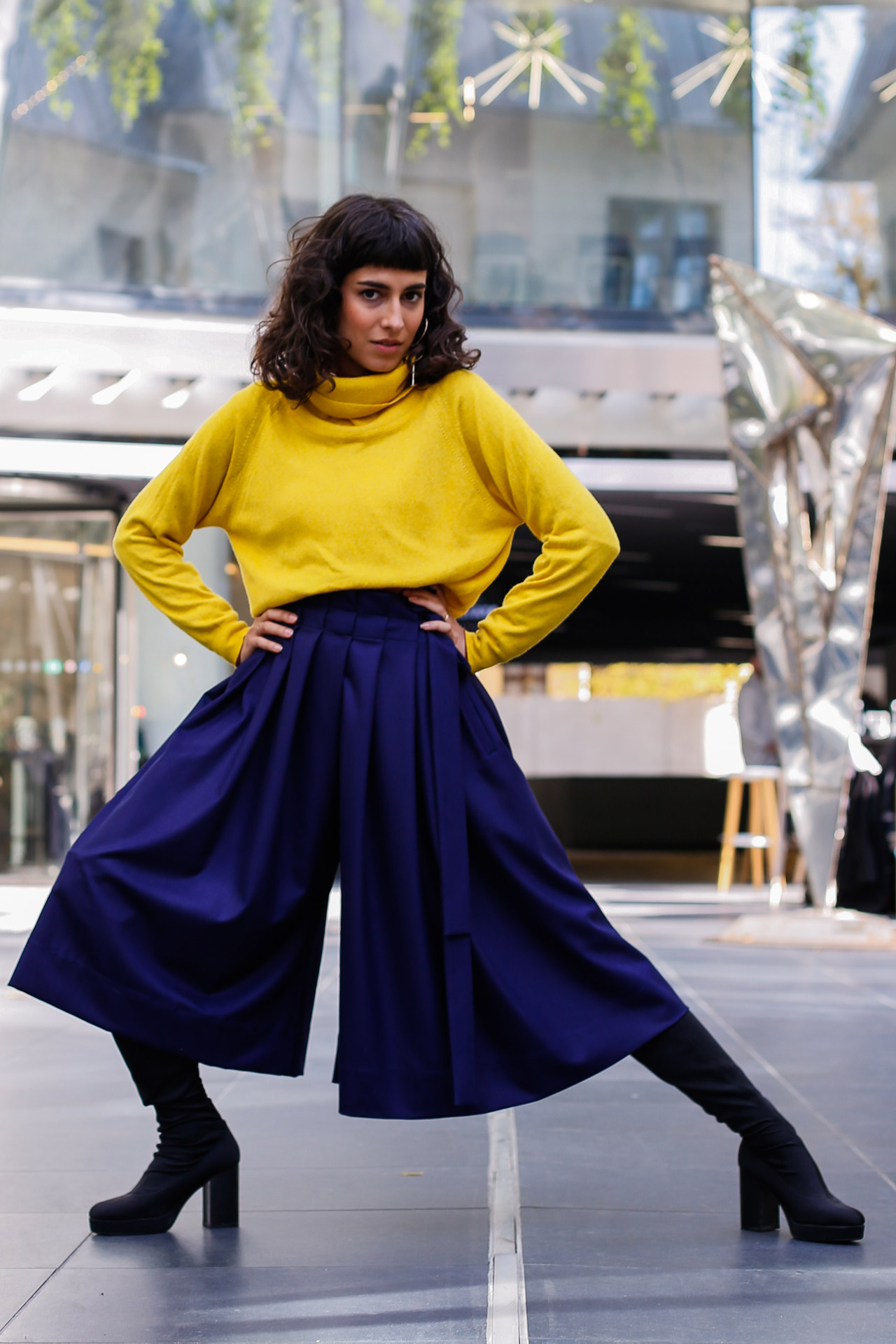 Yoyo are inaltimea 1,62m si poarta o fusta-pantalon marimea XS cu lungimea de 80 cm.