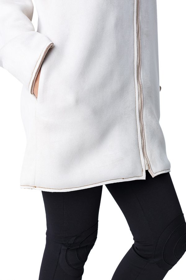 Trench din bumbac gros (ca un doc) cu guler tunica, buzunare laterale si detalii pe care vei fi incantata sa le descoperi.