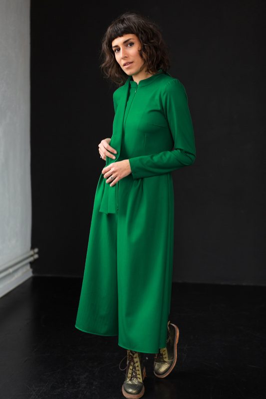 Geometry, minimalism, casual style and dark emerald colour, chic and funny, as a standalone garment or together with other clothing items, the green pinafore dress is a perfect choice for a perfect outfit. You name it, it matches.