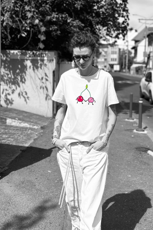 Tricou din bumbac organic. Desen realizat de Ama (11 ani) Aplicatie DTF foarte rezistenta la spalat si purtat. Model relaxed – croiala lejera Marimea XS: Bust